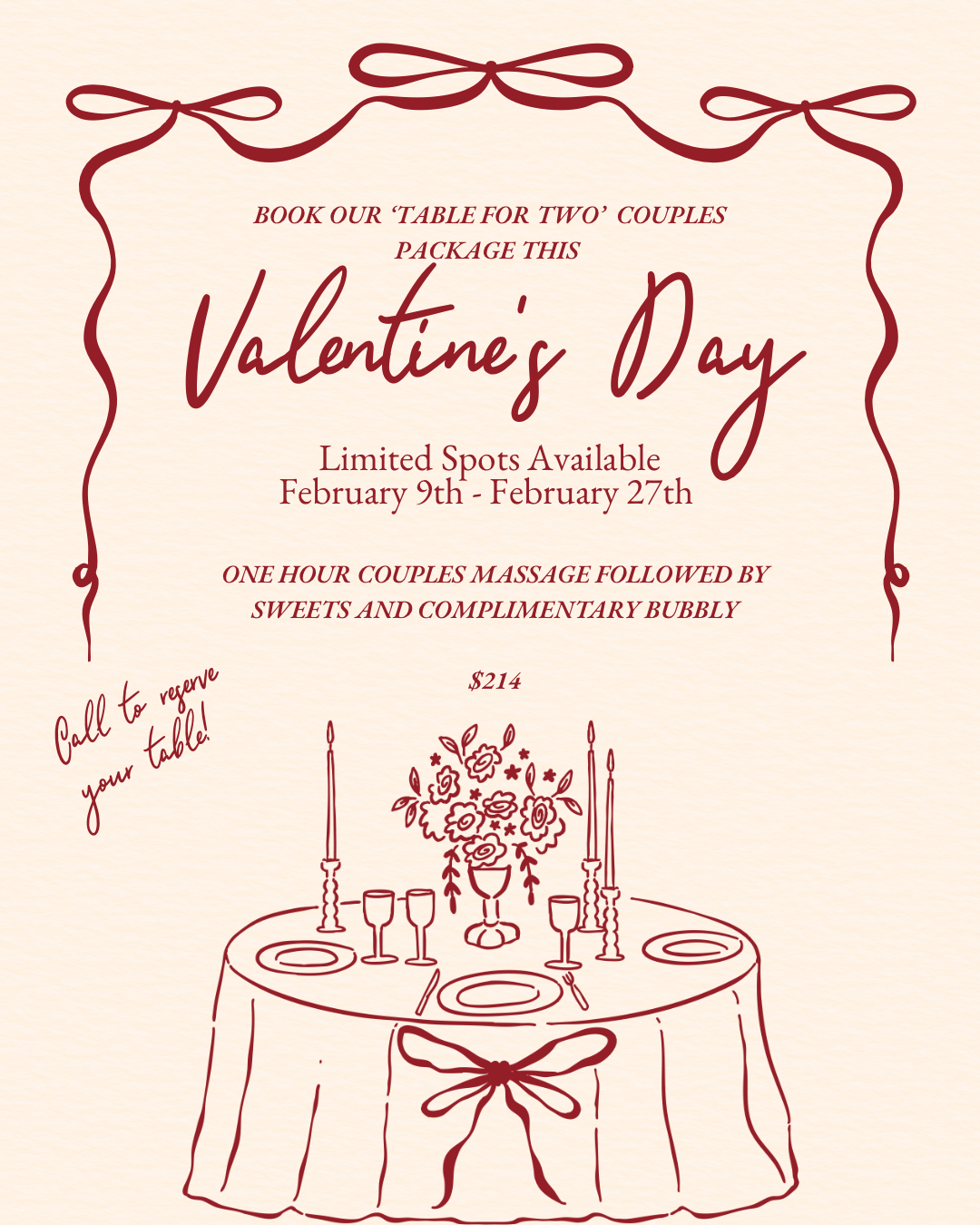 Please Call to book your Table for Two Couples Package at (610) 377-3002 - this service is not able to be booked online.